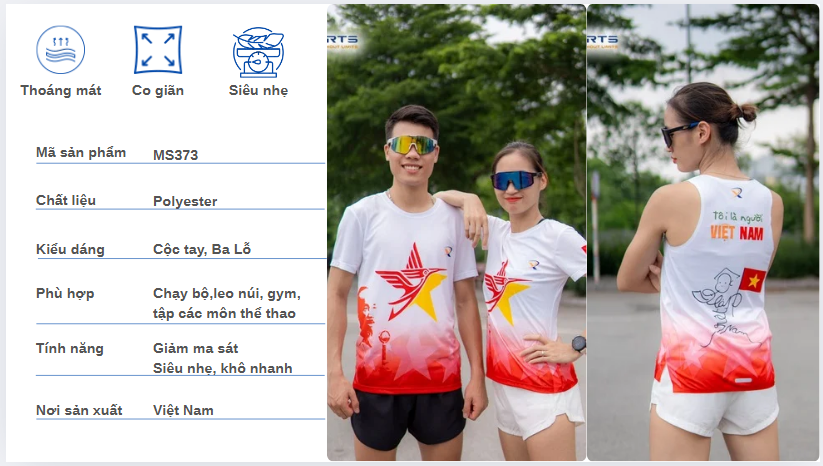 - Kiểu dáng thể thao: Có cả phiên bản áo thun tay ngắn và áo singlet ba lỗ, phù hợp cho cả nam và nữ.
