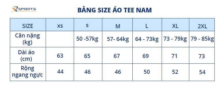 Để chọn được chiếc áo vừa vặn và thoải mái nhất, hãy tham khảo bảng kích thước bên dưới: