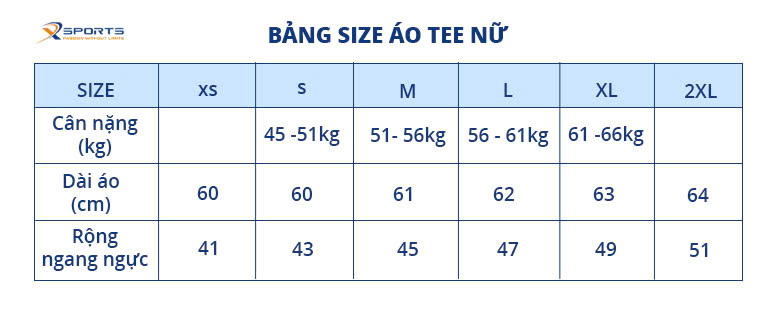 3. Hướng dẫn chọn size Áo chạy bộ thiết kế hoa đào Xsports Ms340