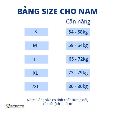 Lưu ý: Bảng size mang tính tham khảo. Để được tư vấn chi tiết hơn, vui lòng liên hệ đội ngũ hỗ trợ của Xsports!