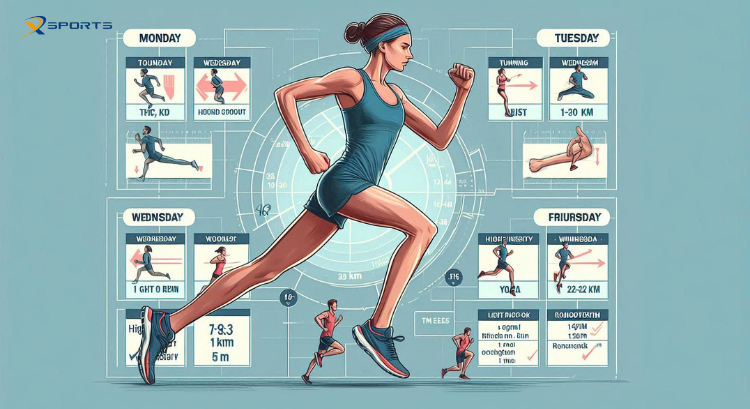 Thời gian tập luyện thường kéo dài từ 16-20 tuần. Trong khoảng thời gian này, bạn nên có ít nhất một ngày chạy dài mỗi tuần để xây dựng sức bền. Dưới đây là một ví dụ về lịch tập luyện cơ bản trong một tuần: