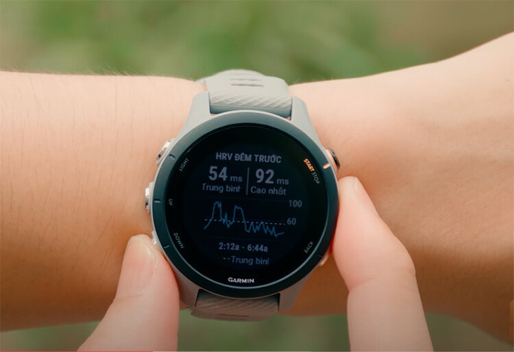 - Trạng thái HRV: HRV là tính năng mới được bổ sung trên thiết bị đeo FR255 giúp theo dõi sự biến thiên nhịp tim (HRV) khi đang ngủ. Đó là một chỉ báo tốt về mức độ sẵn sàng của cơ thể bạn để tập luyện. HRV là tính năng mới trong thiết bị đeo được và một số thiết bị theo dõi thể dục , chẳng hạn như Whoop 4.0 , xây dựng toàn bộ hệ sinh thái của họ xung quanh chỉ số này.