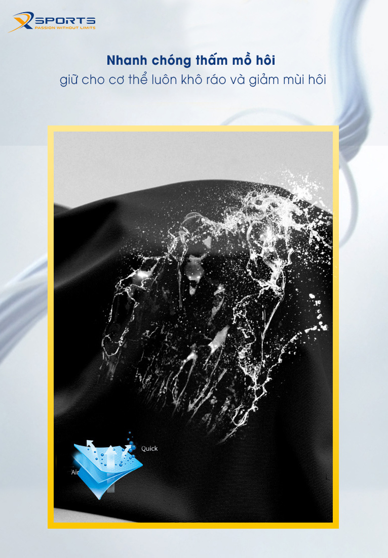 - Thấm hút mồ hôi và nhanh khô: Giữ cơ thể khô ráo, thoải mái ngay cả khi vận động cường độ cao.