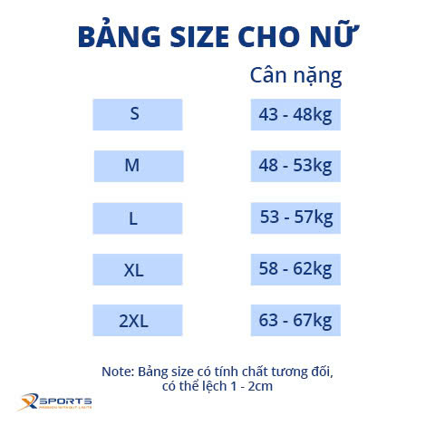 Lưu ý: Nếu bạn không chắc chắn về size, hãy liên hệ đội ngũ tư vấn của Xsports để được hỗ trợ.