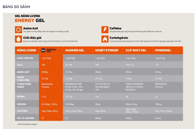 3. Thành phần chính trong Gel Năng Lượng GU
